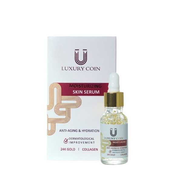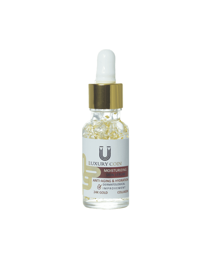 سرم طلا لاکچری کوین دارای ترکیبات طلای 24 عیار، کلاژن و هیالورونیک اسید است.